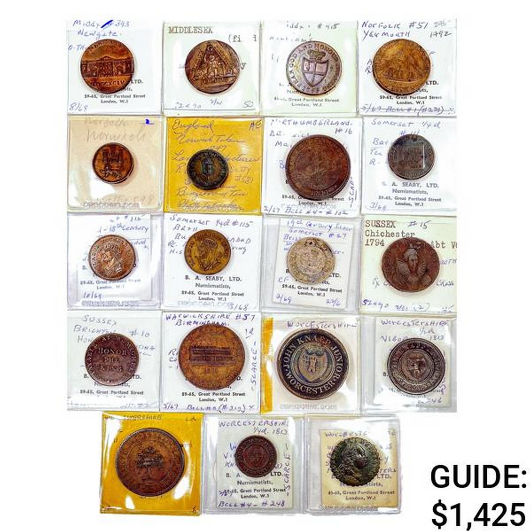 1780-1830 Varied British Copper Tokens [19 Coins]