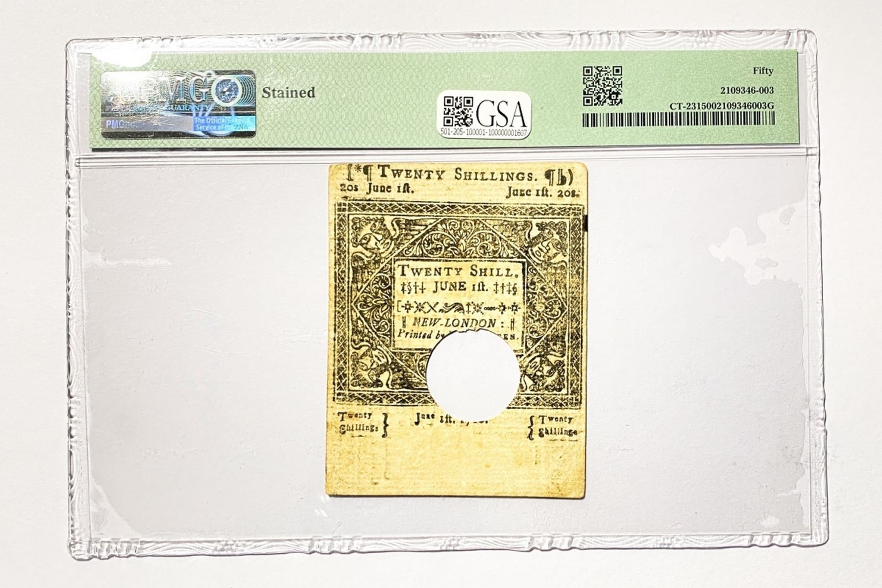 1780 20 Shillings CT Col. Note PMG 50 UNC