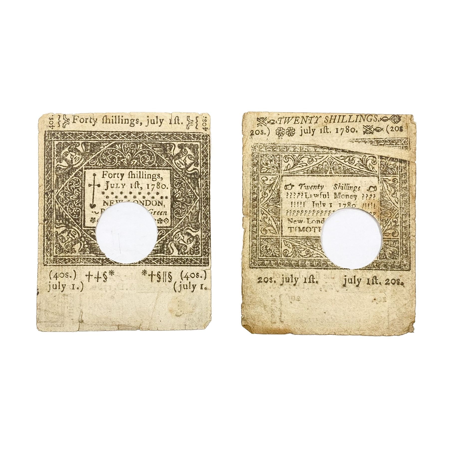 1780 CT Twenty & Forty Shilling Bank Notes (2 Item