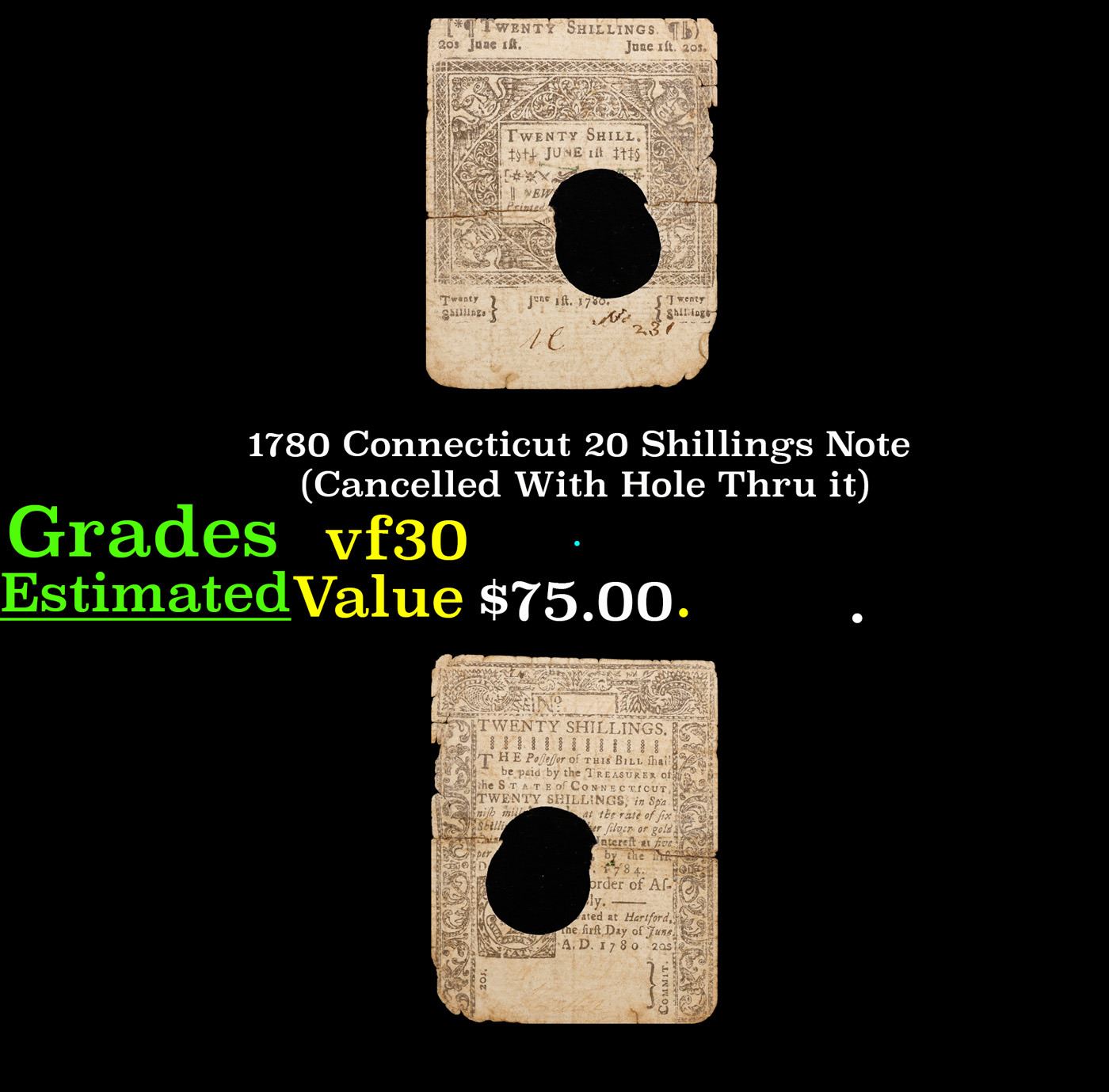 1780 Connecticut 20 Shillings Note (Cancelled With Hole Thru it) Grades vf++.