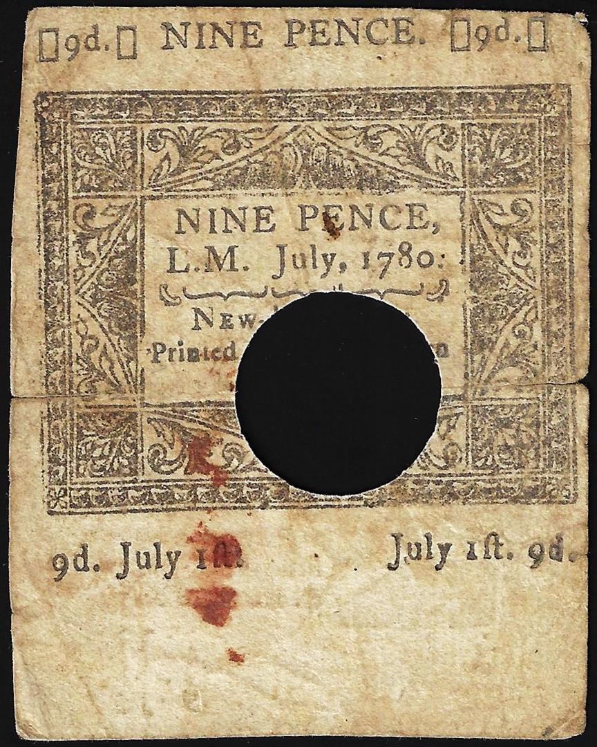 One 1780 Connecticut Nine Pence Colonial Currency Note.