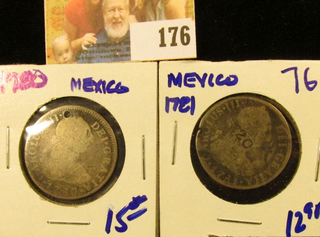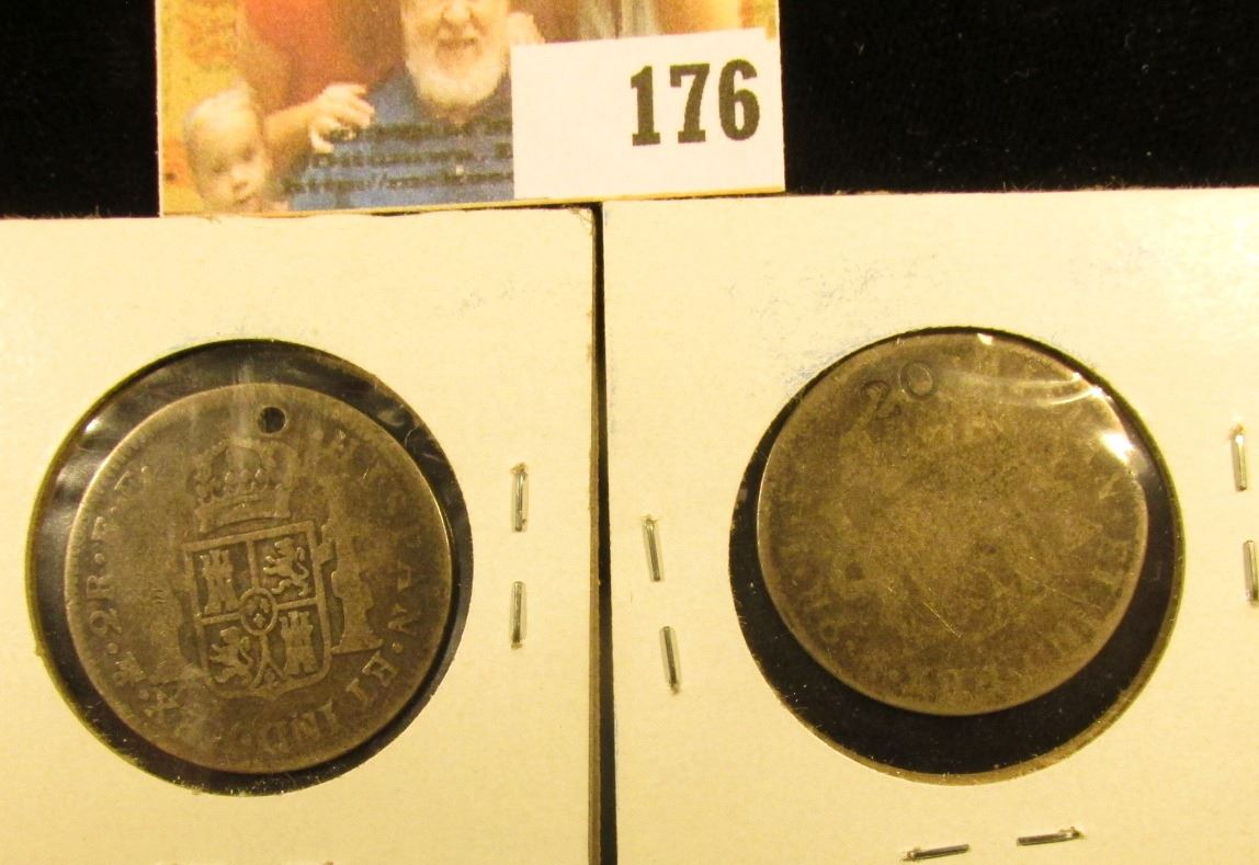 1780 MEXICAN 2 REALES HOLED PLUS 1781 2 REALES WITH A COUNTERMARK OF 20 ON EACH ONE
