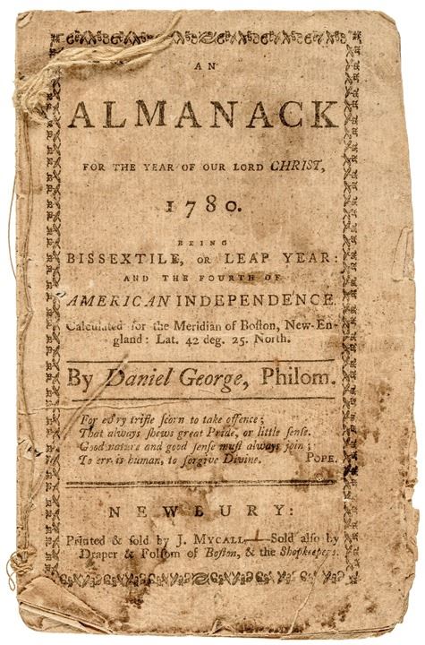 1780 Revolutionary War, “An Almanack for the Year of our Lord Christ, 1780,” by Daniel George, Philom, Newbury (MA). Fine.