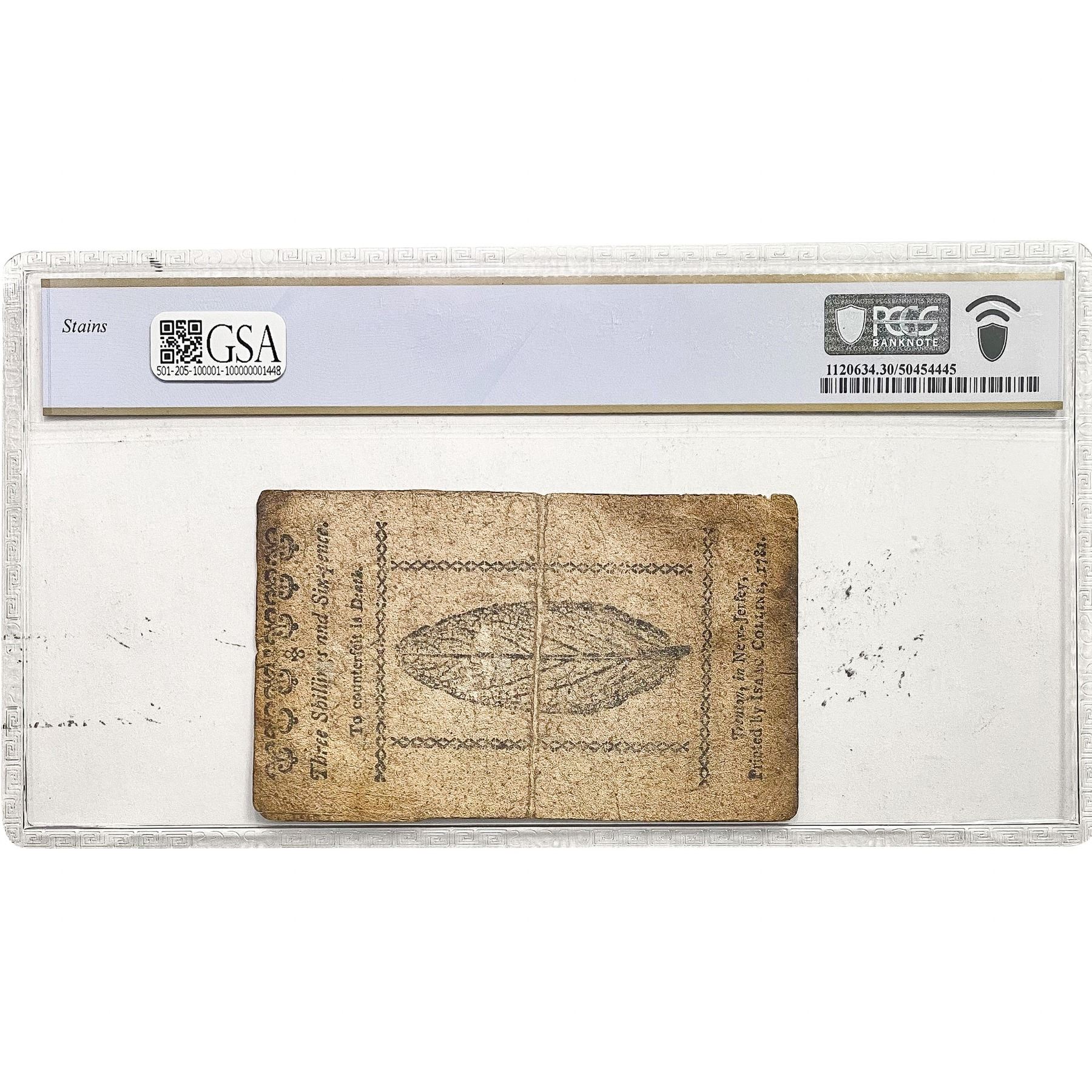 1781 3s6d New Jersey/Colonial Currency PCGS VF 30