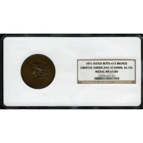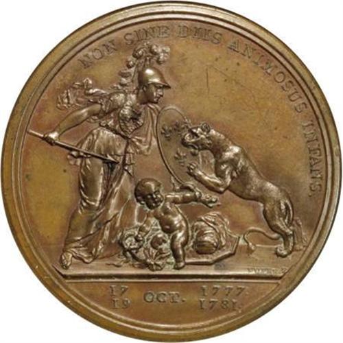 <B>1781 Libertas Americana Medal MS63 NGC.</B></I> Betts-615. Bronze, 47.69 mm, 46.15 gm. An American classic! This issue tops the list of the recently published book entitled <I>100 Greatest American Medals and Tokens</B></I> by Katherine Jaeger and Dave Bowers. In fact, the same reference features a silver version as the cover coin. The authors eloquently summarize the popularity of this medal in their opening statement: "When all the votes were counted for the <I>100 Greatest</B></I>, the Libertas Americana was elected No. 1, and by a good margin. Its beauty, its rich history, and its inspiration for federal Liberty Cap coinage combine to make this medal an object of desire for many numismatists."<BR> Without question, the allure of the Libertas Americana (Betts-615) is further enhanced by the fact that the concept was the creation of Benjamin Franklin, one of America's most memorable Founding Fathers and greatest citizens. A letter from Franklin to Robert Livingston (secretary of foreign affairs under the Confederation) on March 4, 1782 forever documents Franklin's role in the Libertas Americana medal. As transcribed from the <I>100 Greatest</B></I> reference, credited there as being from the letters of Jared Sparks, <I>Franklin's Works</B></I>, as quoted by William Sumner Appleton, <I>American Journal of Numismatics</B></I>, November 1867:<BR><BR>''This puts me in mind of a medal I have had a mind to strike, since the late great event you gave me an account of, representing the United States by the figure of an infant Hercules in his cradle, strangling the two serpents; and France by that of Minerva, sitting by as his nurse, with her spear and helmet, and her robe specked with a few fleurs de lis. The extinguishing of two entire armies in one war is what has rarely happened, and it gives a presage of the future force of our growing empire.''<BR> <BR> Because of the existence of above letter by Franklin, the allegorical theme on the reverse of the Libertas Americana medal requires no interpretation. The obverse date of "4 JUIL. 1776." is obviously a reference to the date of the adoption of America's Declaration of Independence. In the reverse exergue, the two dates correspond to Revolutionary War victories by American forces over the British at Saratoga (October 17, 1777) and Yorktown (October 19, 1781). The reverse legend, NON SINE DIIS ANIMOSUS INFANS, was suggested to Franklin by Sir William Jones. It is an ancient quote from the Roman lyric poet Horace and roughly translates to "the infant is not bold without divine aid." It has long been accepted that famed French medalist Augustin Dupré engraved the dies based on the sketches of Esprit-Antoine Gibelin. Dupré signed both the obverse and reverse dies of this medal, which was struck at the Paris Mint in 1783. There have been some suggestions recently that other artists were at least partially responsible for the design of the Libertas Americana medal, however such theories are just that and are not supported by concrete evidence.<BR> The Libertas Americana medal has a significant reach into world history as well. Researcher Alan M. Stahl relates in his article entitled "Comitia Americana Medals" written for the <I>Coinage of the American Confederation Perio</B></I>d reference (COAC, ANS, October 28, 1995) that Franklin, in 1783, "presented two gold specimens to Louis XVI and Marie Antoinette and silver ones to French ministers and the Grand Master of Malta; he sent a silver one to the President of Congress, Elias Boudinot, and promised copper ones for the members of Congress." Louis XVI and Marie Antoinette were later executed at the height of the French Revolution in 1793, which, coincidentally, is a significant date in American numismatic history. The gold medals are untraced to this day and it is possible that they were melted during the turmoil in France after the executions of the King and Queen.<BR> The Jaeger-Bowers reference notes that 100 to 125 examples are believed to exist in copper. Many exist with blatant signs of handling, some are heavily damaged. The current example is certainly at the high end of the condition curve, based on a survey of examples sold at auction over the past several years. The glossy surfaces display a medium chocolate-brown coloration throughout and the details are well struck, as is typical for this issue. Listed on page 86 of the 2008 <I>Guide Book</B></I>.<BR><I>From The Madison Collection.</B></I><BR><BR><b>Shipping:</b> Coins & Currency (<a target="_blank" href="http://www.heritageauctions.com/common/shipping.php">view shipping information</a>)