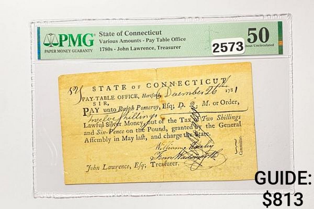 1781 Vari. Amounts Pay Table Office Certificate-CT PMG 50 UNC