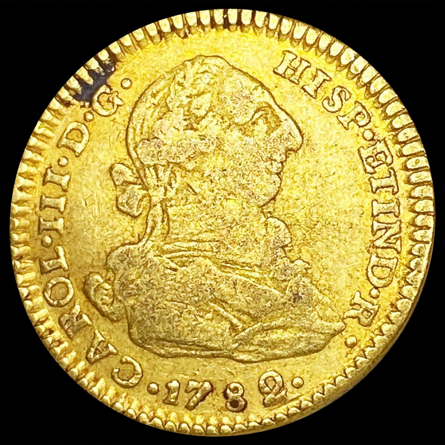 1782 Columbia .901 Gold 2 Escudo LIGHTLY CIRCULATE