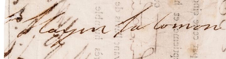 Born in Lissa, Poland, in 1740, Salomon spent several years moving around western Europe and England, developing fluency in several languages that served him well for the remainder of his life. Reaching New York City in 1772, he swiftly established himself as a successful merchant and dealer in foreign securities. Striking up an acquaintance with Alexander MacDougall, leader of the New York Sons of Liberty, Salomon became active in the patriot cause. When war broke out in 1776, Salomon got a contract to supply American troops in central New York. In 1777, he married Rachel Franks, whose brother Isaac was a lieutenant colonel on George Washington's staff. Their ketubah resides at the American Jewish Historical Society.