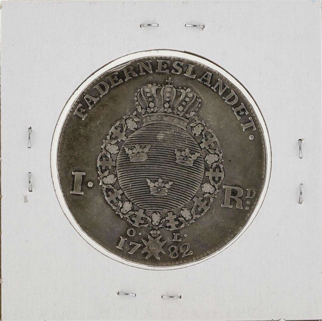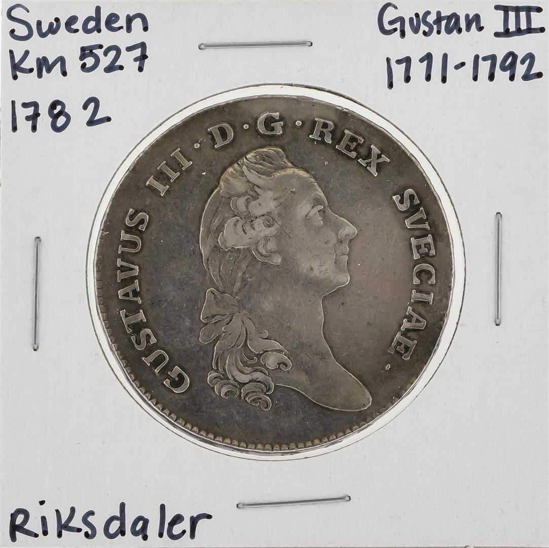 One 1782 Sweden KM527 Gustavus III Riksdaler Coin.