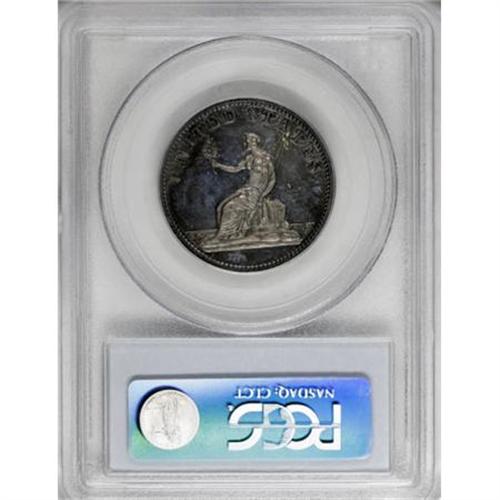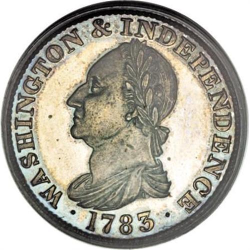 <B>1783 1C Silver Restrike Washington & Independence Cent, Draped Bust, Engrailed Edge PR62 Cameo PCGS.</B></I> Baker-3A. Silver restrikes are elusive for this W.J. Taylor No Button, Large 3 restrike. Among the few silver issues available to Early American collectors. The radiant pearl-gray devices are intricately struck, and contrast with the silver-blue fields and aquamarine borders. The fields are lightly hairlined, consistent with the grade. One of only two examples given a Cameo designation by PCGS. Listed on page 76 of the 2008 <I>Guide Book</B></I>.<BR><BR><b>Shipping:</b> Coins & Currency (<a target="_blank" href="http://www.heritageauctions.com/common/shipping.php">view shipping information</a>)