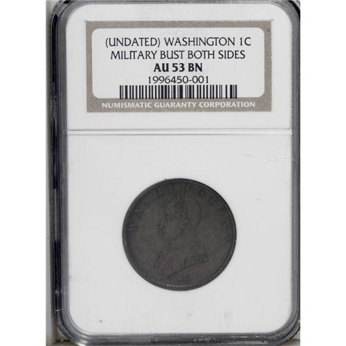 <B>1783<1C> Undated Double Head AU53 NGC.</B></I> Baker-6. A lightly worn piece with better-than-average detail and pleasing medium brown surfaces tinged with red. A small die break is noted near 6 o'clock on the ONE CENT side.