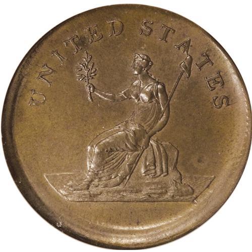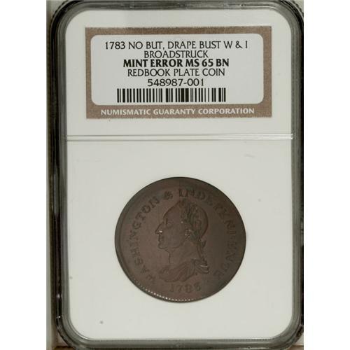 <B>1783<1C> Washington & Independence Cent, Draped Bust--Broadstruck--MS65 Brown NGC.</B></I> Ex: Ford. Baker-2, R.1. No Toga Button. This example has certain characteristics that are similar to the so-called "Soho restrike" listed by Breen in his <I>Complete Encyclopedia</B></I> as number 1191 and struck in brass. The example offered here is copper and not brass as Breen suggested. It is definitely not to be confused with the so-called Taylor Restrike, which has a Large 3 in the date and is often seen in high grades. Not so for Baker-2, and in fact, the present piece is single finest certified by either NGC or PCGS. The surfaces have a satiny appearance with medium to dark brown color and hints of original orange luster. It is similar in appearance to later coinage routinely described as Broadstruck. The surfaces are excellent, with only a few tiny blemishes or imperfections. The present piece is plated on page 76 of the 2007 <I>Guide Book.</B></I><BR><I>Ex: John J. Ford, Jr. Collection, Part II (Stack's, 5/04), lot 4. Earlier purchased by Ford from Fred Baldwin in 6/67.</B></I>