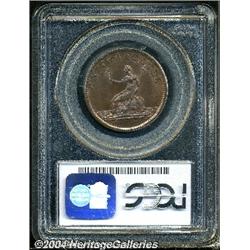 <B>1783<1C> Washington & Independence Cent, Draped Bust, Copper Restrike, Engrailed Edge PR65 Red and Brown PCGS.</B></I> Baker-3. R.1. This exquisitely struck Gem features peripheral brick-red color, while the fields and devices have mellowed in medium brown hues. A tiny planchet flaw (as made) on the field near the olive branch stem. Rulau and Fuld attribute these restrikes of the 1783 issue to London dealer W.S. Lincoln in 1860. However, Breen asserts that they were made by leading mid-19th century Birmingham medallist W.J. Taylor. Listed on page 65 of the 2005 <I>Guide Book.</B></I> <BR><BR><B>Important notice:</B> Heritage usually auctions material at the rate of 200-250 lots per hour. On some occasions eBay Live bid software or the Internet may not be able to keep up with the pace of the auction. We recommend placing a realistic absentee bid now as insurance to avoid disappointment. Occasionally the auctioneer may eliminate or reject an eBay Live bid, and the auctioneer may also reopen a lot after the close of the eBay live bidding (usually because we missed an audience bid), and may reject your bid even if it shows you as the winning bidder. By bidding via eBay Live, you agree that Heritage may award the lot to another bidder at its sole discretion under the circumstances described above or any other reasonable circumstances. Since eBay bids are not shown to us until we open the lot on the floor, we treat those bids just like floor bids. In most cases the floor responds before the eBay bid is presented to us, due to Internet lag time, so for consistency we have made it a policy that floor bids are always considered first over tie eBay live bids. Also please note that all Heritage lots purchased through eBay Live carry a 20% Buyer's Premium. Please make sure you read the Terms and Conditions before you bid.