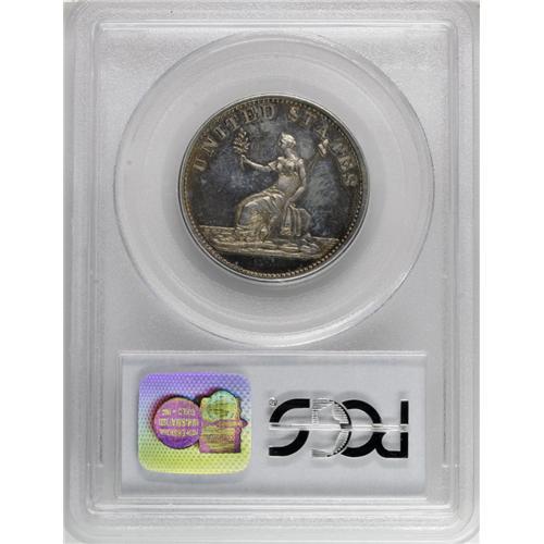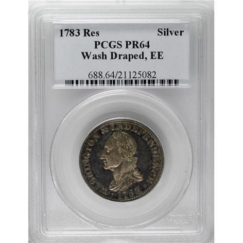 <B>1783 1C Washington & Independence Cent, Draped Bust, Silver Restrike PR64 PCGS.</B></I> Baker-3A. These 19th century dies present a thicker-letter variant of the 1783 design. The surfaces glitter with proof reflectivity and the nicely frosted devices are intricately detailed. Light golden-brown and sky-blue toning enriches both sides. The silver restrike is much scarcer than its copper counterpart. Listed on page 76 of the 2007 <I>Guide Book.</B></I><BR><I>Ex: Central States Signature (Heritage, 4/02), lot 7835, which realized $5,290.</B></I><BR><I>From The Jones Beach Collection.</B></I><BR><BR><b>Shipping:</b> Coin/Currency (<a target="_blank" href="http://www.heritageauctions.com/common/shipping.php">view shipping information</a>)