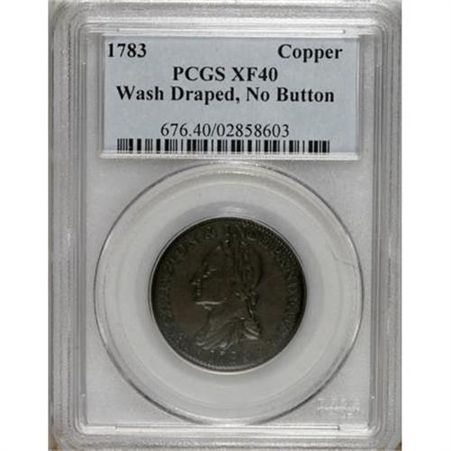<B>1783 1C Washington & Independence Cent, Draped Bust, No Button XF40 PCGS.</B></I> PCGS Population (7/66). NGC Census: (0/0). (#676)<BR><BR><b>Shipping:</b> Coins & Currency (<a target="_blank" href="http://www.heritageauctions.com/common/shipping.php">view shipping information</a>)