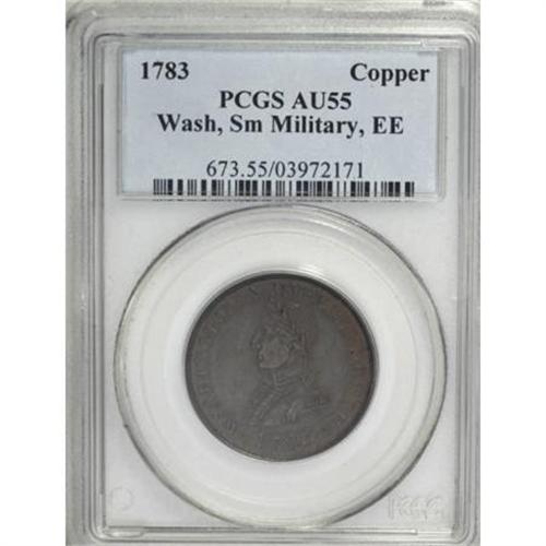 <B>1783 1C Washington & Independence Cent, Small Military Bust, Engrailed Edge AU55 PCGS.</B></I> Baker-4B, R.3. The scarcer edge variety of the Small Military Bust type, which is in turn more elusive than the Large Military Bust. This deep brown Washington piece has smooth surfaces and only a hint of highpoint wear. Listed on page 75 of the 2008 <I>Guide Book.</B></I> Population: 6 in 55, 7 finer (12/07).<BR><BR><b>Shipping:</b> Coins & Currency (<a target="_blank" href="http://www.heritageauctions.com/common/shipping.php">view shipping information</a>)