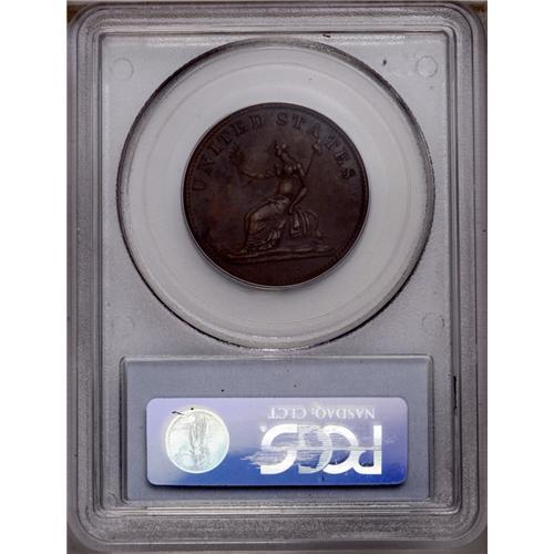 <B>1783<1C> Washington & Independence Cent, Draped Bust, Copper Restrike, Engrailed Edge PR62 Brown PCGS.</B></I> Baker-3. A crisply struck chocolate-brown example with pleasing surfaces aside from a couple of handling marks on the seated effigy. A small number 5 is inked to the left of the date. Listed on page 76 of the 2006 <I>Guide Book.</B></I>