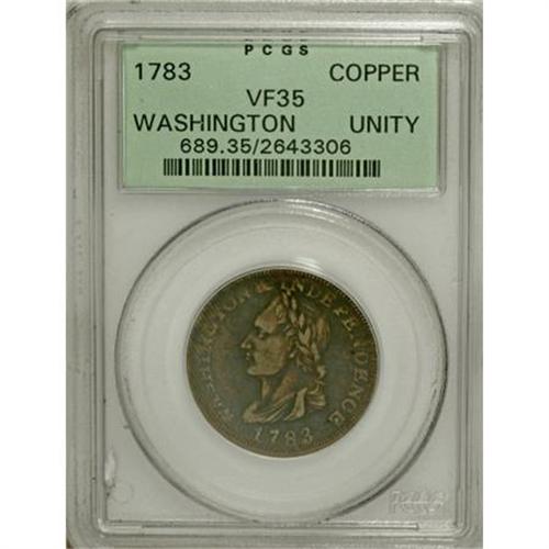 <B>1783 1C Washington Unity States Cent VF35 PCGS.</B></I> PCGS Population (16/190). NGC Census: (0/0). (#689)<BR><BR><b>Shipping:</b> Coins & Currency (<a target="_blank" href="http://www.heritageauctions.com/common/shipping.php">view shipping information</a>)
