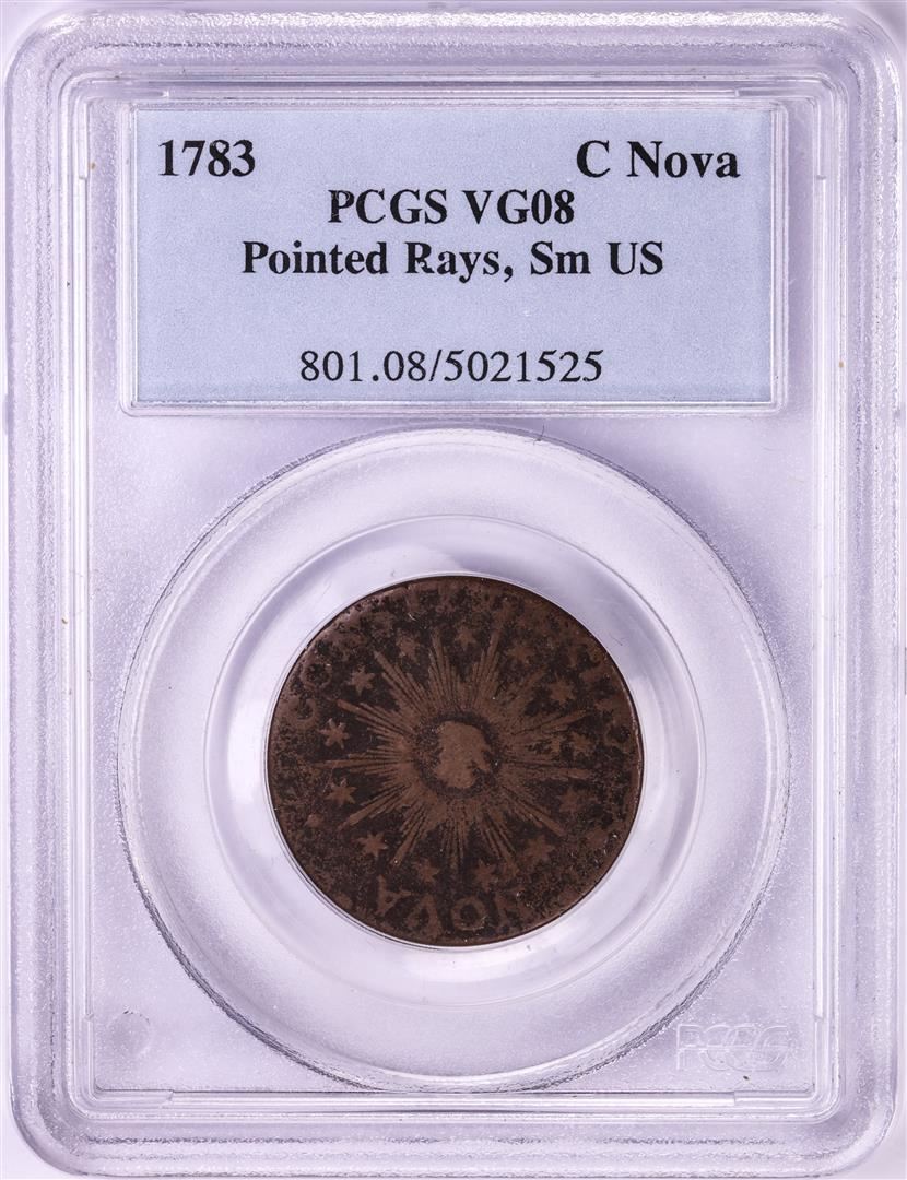 One 1783 C Nova Constellatio Pointed Rays Colonial Copper Coin PCGS VG08. PCGS Graded.