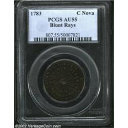 1783 COPPER Nova Constellatio Copper, Blunt Rays AU55 PCGS. Crosby 3-C. The only 1783-dated variety.