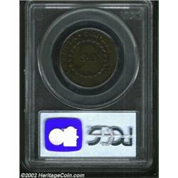 1783 COPPER Nova Constellatio Copper, Blunt Rays AU55 PCGS. Crosby 3-C. The only 1783-dated variety with the CONSTELATIO spelling. Smooth, glossy surfaces with only a small spot of corrosion below the S of U.S. and there are few circulation marks, none of which are large. Nice medium brown color overall with great eye appeal. A coin that could be equally at home in a general Colonial type set as the only Nova Constellatio or in a Nova Constellatio variety set. Listed on page 34 of the 2003 Guide Book. Important notice: We expect to be auctioning lots at the rate of 200-250 per hour. Sometimes eBay Premier live bid software cannot keep up with that pace, so we strongly recommend that you place a realistic proxy bid now as insurance to avoid disappointment. Also please note that all Heritage/CAA lots purchased through eBay Premier carry a 20% Buyer's Premium. Please make sure you read the Terms and Conditions.