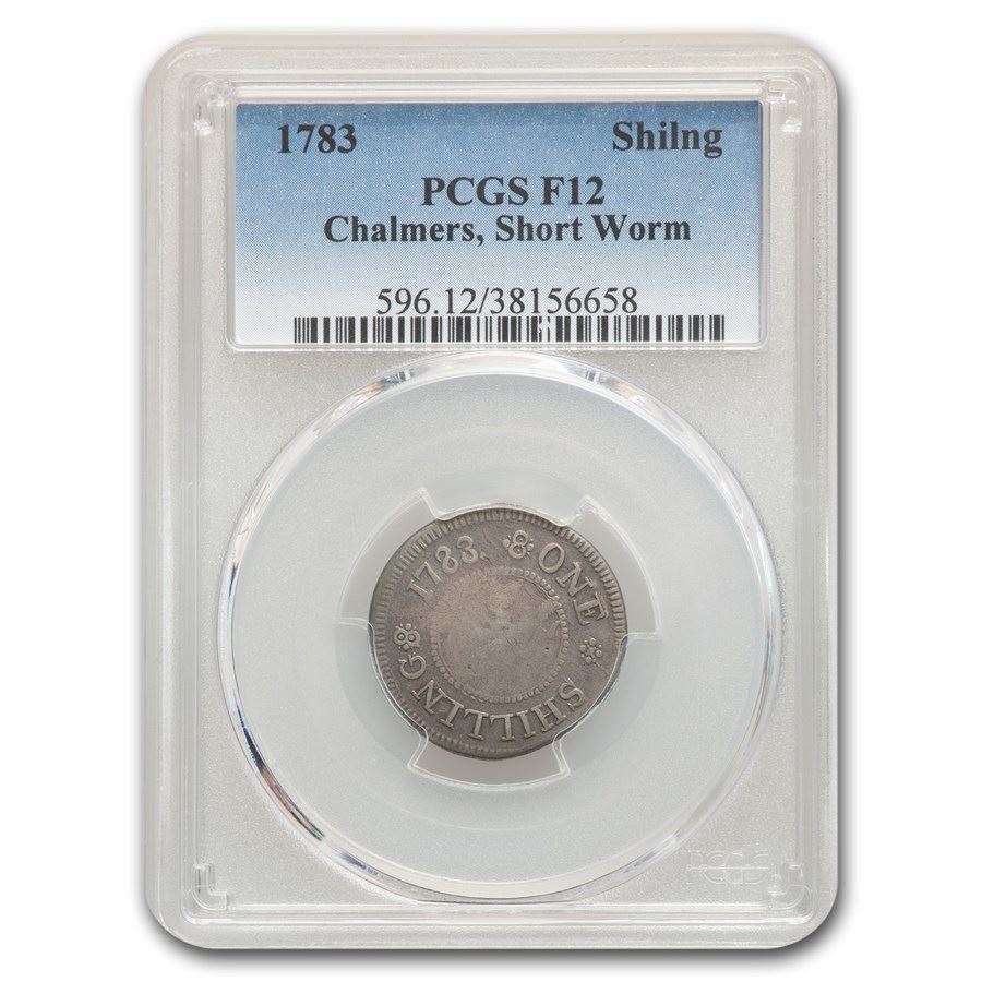 1783 Chalmers Shilling Short Worm Colonial Fine-12 PCGS
