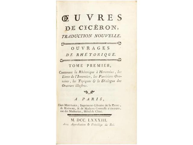 1783,. LIBRO: (CLASICOS EN FRANCES),. CICERON:, OEUVRES DE ..., Traduction nouvelle. A Paris: chez M