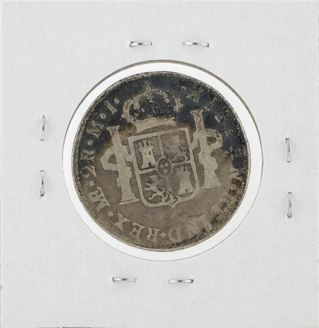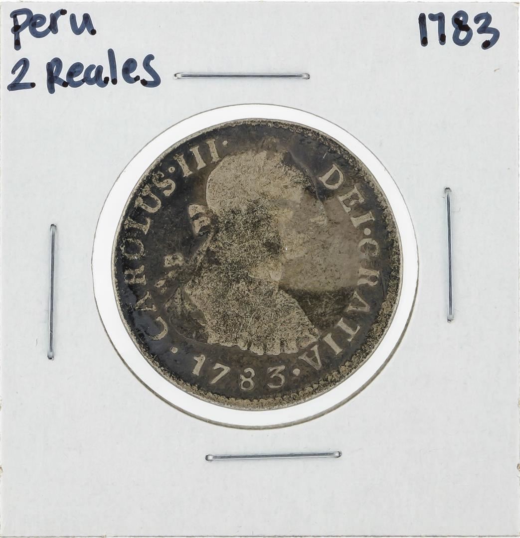 One 1783 Peru 2 Reales Silver Coin.