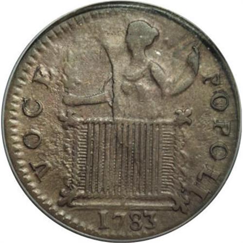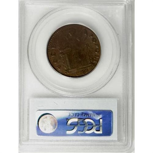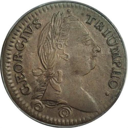 <B>1783 TOKEN Georgivs Triumpho Token AU55 PCGS.</B></I> Baker-7, R.3. A tan-brown piece with a pleasing strike on the hair and only faint wear on the portrait. Unusually smooth aside from a single thin mark across George's jaw. A heavy vertical die break affects the sharpness of the half-length figure, as customary for the type. Listed on page 75 of the 2008 <I>Guide Book.</B></I> Population: 10 in 55, 7 finer (11/07).<BR><BR><b>Shipping:</b> Coins & Currency (<a target="_blank" href="http://www.heritageauctions.com/common/shipping.php">view shipping information</a>)
