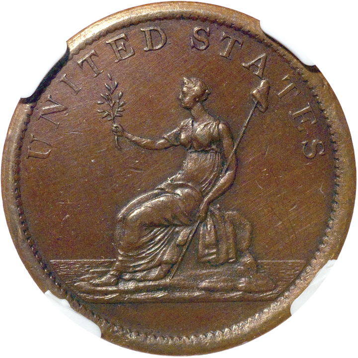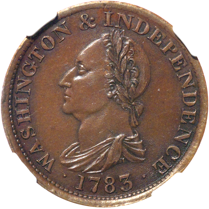 147.2 grains. Attributed as Fuld WA.NC.1783.5, Vlack 17J (5 to 7 Known) according to George Fuld. We acknowledge and greatly appreciate that noted numismatist George Fuld has helped in the attribution the specific variety. Currently housed in an NGC holder with a tag that does not have this specific variety identified. This 1783 Washington & Independence is a major sub-variety rarity. Fuld states that, in full: