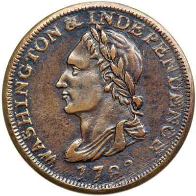 1783 Washington Unity Cent Breen-1188. EF-40. Glossy chocolate and dark olive brown with lighter brown toning on the highpoints. No defects other than the always-present pre-striking planchet marks near the dentils on both sides. Excellent eye appeal for the grade. Weight 120.1 grains.