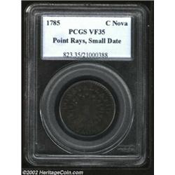 1785 C Nova Nova Constellatio Pointed Rays, Small Date VF35 PCGS. Crosby 2-A, "Rare." Medium brown p
