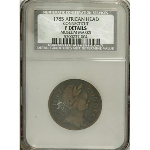 <B>1785 COPPER Connecticut Copper, African Head--Museum Marks--NCS. Fine Details.</B></I> NGC Census: (0/0). PCGS Population (0/27). (#319<BR><BR><b>Shipping:</b> Coins & Currency (<a target="_blank" href="http://www.heritageauctions.com/common/shipping.php">view shipping information</a>)