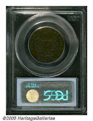 <B>1785<COPPER> Vermont Copper, VERMONTS AU53 PCGS.</B></I> RR-2, Bressett 1-A, R.2. Deep, glossy chocolate-brown surfaces show minimal wear, just the normal irregular strength of detail and modest planchet roughness. Listed on page 57 of the 2005 <I>Guide Book.</B></I>