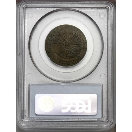 <B>1785<COPPER> Vermont Copper, VERMONTS AU55 PCGS.</B></I> RR-2, Bressett 1-A, R.2. A charming chocolate-brown piece with occasional hints of mahogany patina. Well struck on the landscape and all-seeing eye, and most of the rays are also sharp. The strike is soft on the date and at 10 o'clock, because the planchet was thinner near those areas. Where not fully brought up, the surfaces are microgranular, likely as present on the planchet before the strike. A few unimportant planchet flaws are detected at the borders. Vermont republic coppers were first struck in 1785. A landscape type was used through 1786, then designs similar to the contemporary Connecticut coppers were adopted. As of (6/06), the present piece is the only AU55 certified by PCGS, with none finer. Listed on page 68 of the 2006 <I>Guide Book.</B></I>