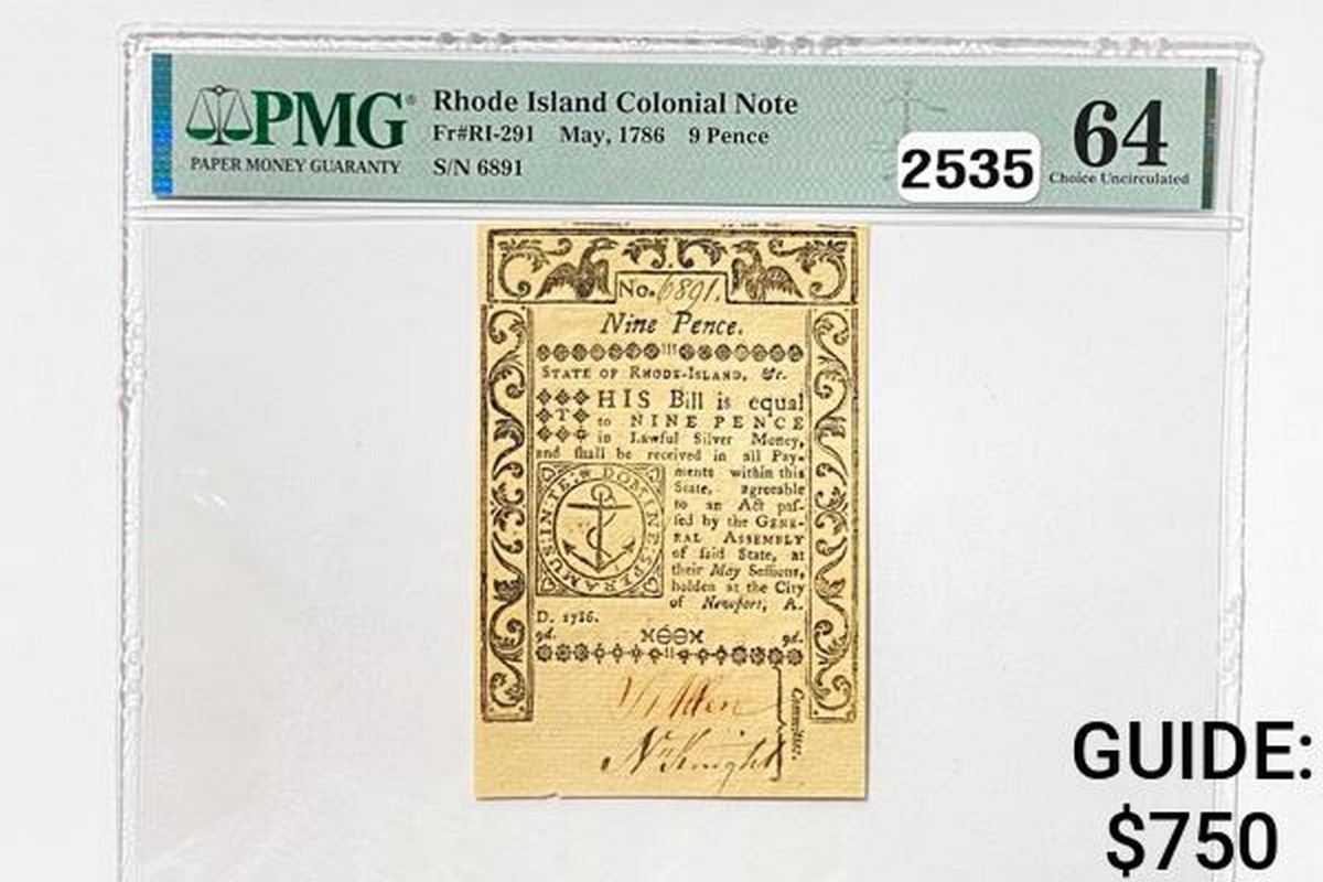 1786 9 Pence R.I. Colonial Note PMG 64 CU