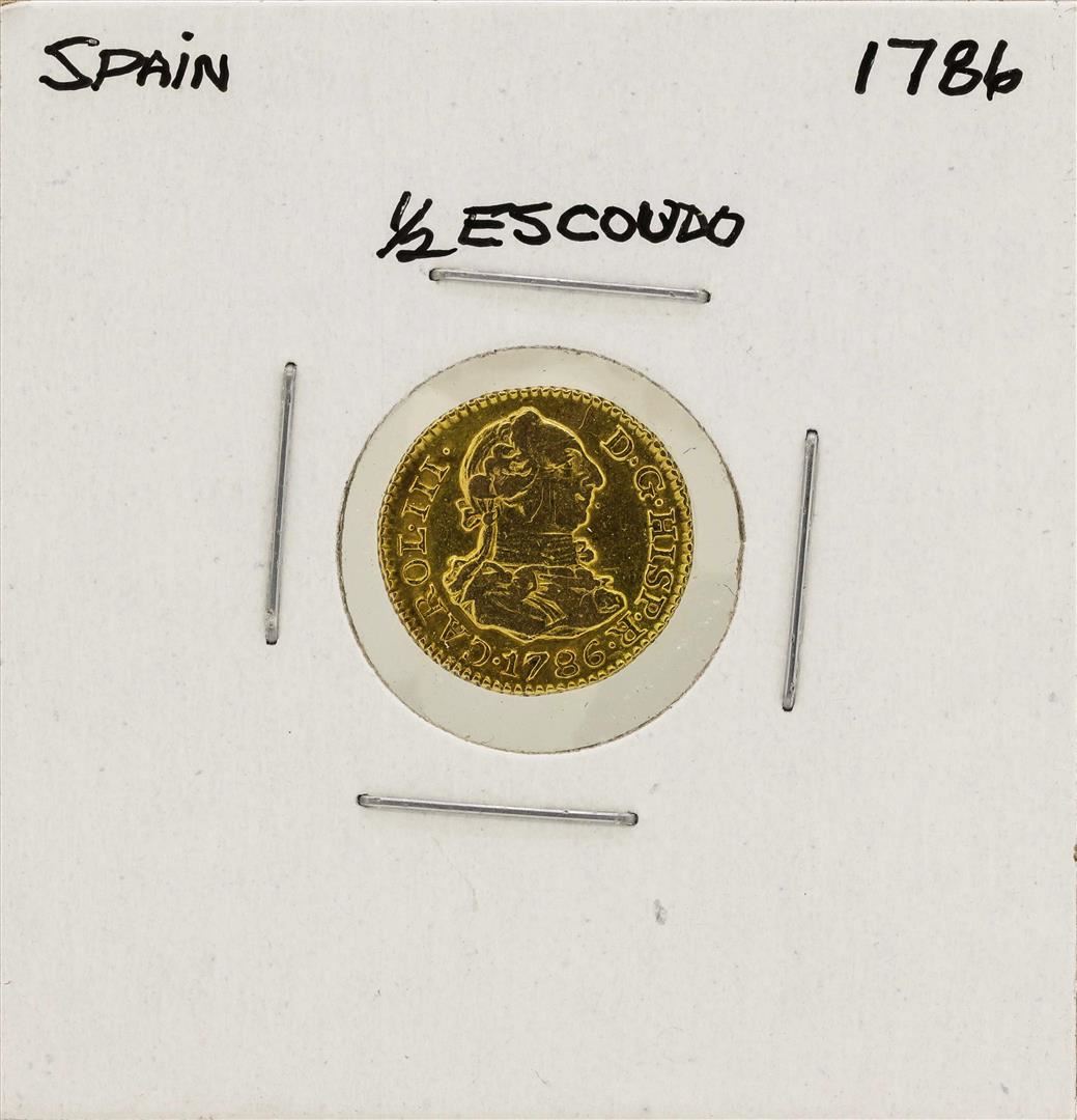 One 1786 Charles III Spanish 1/2 Escudos Gold Coin.