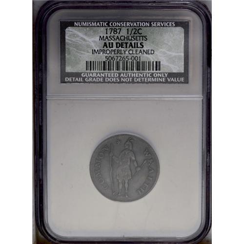 1787 1/2 C Massachusetts Half Cent--Improperly Cleaned 1787[1/2 C] Massachusetts Half Cent--Improper