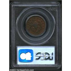 1787 1/2 C Massachusetts Half Cent MS64 Brown PCGS. Ryder 4-C. This is a richly toned, mostly medium brown example that displays some faded reddish tinting at select angles. The strike is sharp throughout and, were the smooth surfaces a little more vibrant, they would probably warrant consideration at the Gem grade level. There is a well concealed swirl of crimson color on the obverse between the CO in COMMONWEALTH. Listed on page 39 of the current Guide Book. Important notice: We expect to be auctioning lots at the rate of 200-250 per hour. Sometimes eBay Premier live bid software cannot keep up with that pace, so we strongly recommend that you place a realistic proxy bid now as insurance to avoid disappointment. Also please note that all Heritage/CAA lots purchased through eBay Premier carry a 20% Buyer's Premium. Please make sure you read the Terms and Conditions.