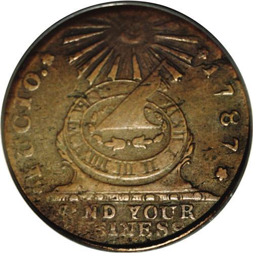 1787 1C Fugio Cent, Club Rays, Concave Ends, FUCIO VF3 1787[1C] Fugio Cent, Club Rays, Concave Ends,