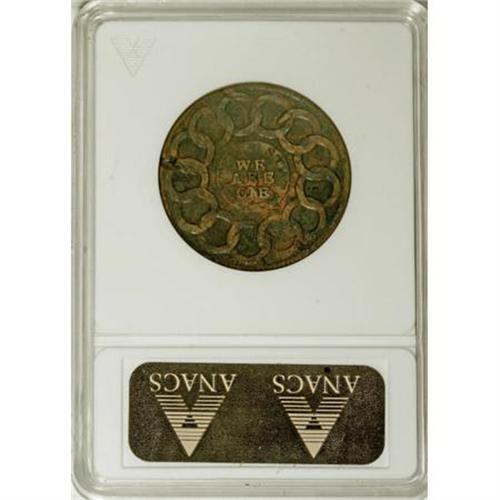 1787 1C Fugio Cent, Club Rays, Rounded Ends F12 ANACS