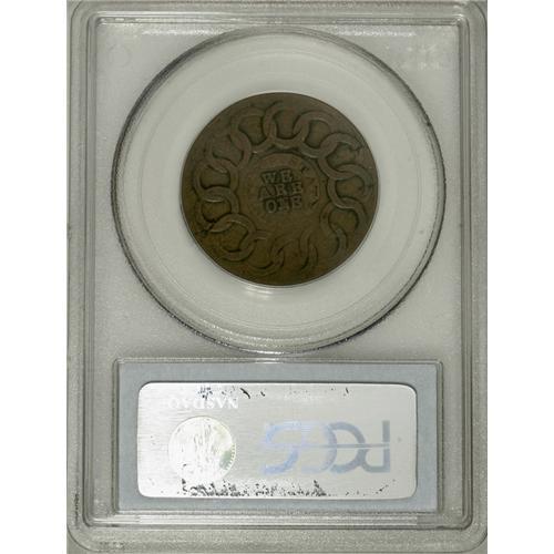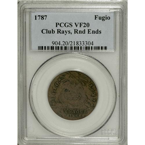 1787 1C Fugio Cent, Club Rays, Rounded Ends VF20 PCGS.