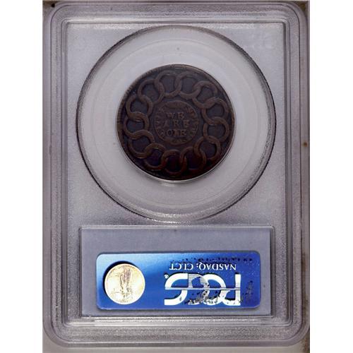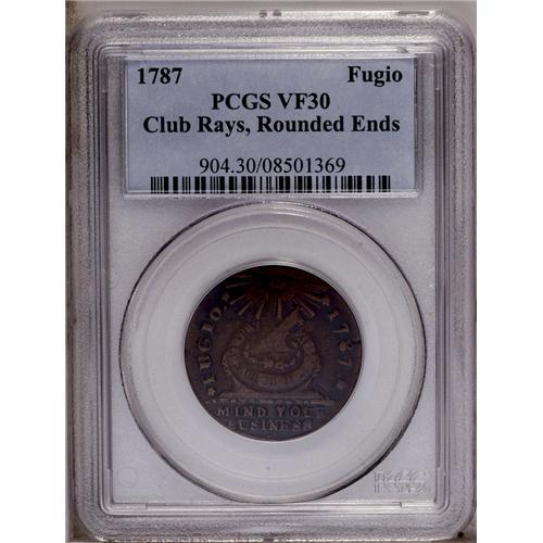 1787 1C Fugio Cent, Club Rays, Rounded Ends VF30 PCGS.