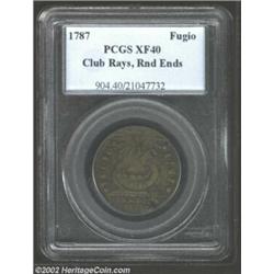 1787 1C Fugio Cent, Club Rays, Rounded Ends XF40 PCGS. Newman 3-D, R.3. A medium-brown piece that is