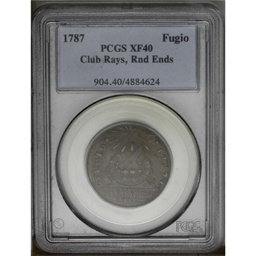 1787 1C Fugio Cent, Club Rays, Rounded Ends XF40 PCGS.