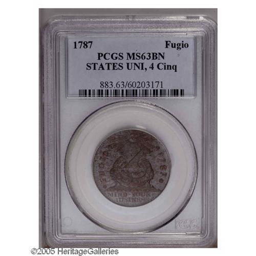 1787 1C Fugio Cent, STATES UNITED, 4 Cinquefoils MS63 1787[1C] Fugio Cent, STATES UNITED, 4 Cinquefo