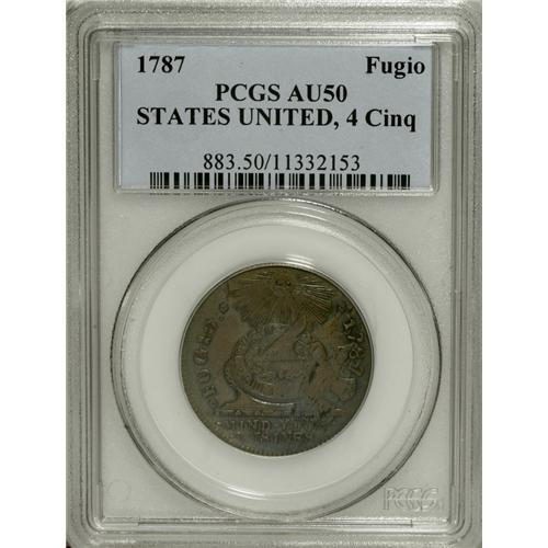 1787 1C Fugio Cent, STATES UNITED, Cinquefoils AU50 PC