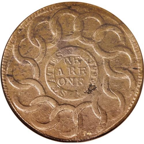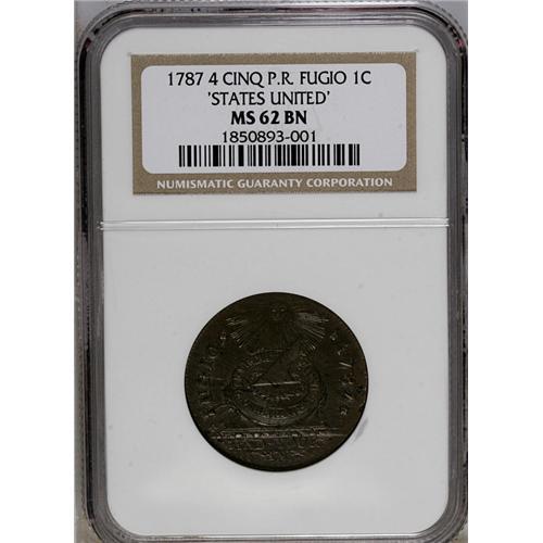 1787 1C Fugio Cent, STATES UNITED, Cinquefoils MS62 Br