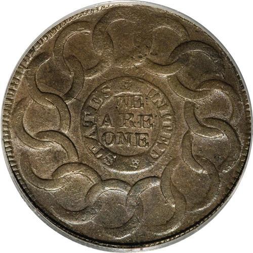 1787 1C Fugio Cent, STATES UNITED, Cinquefoils MS62 Br