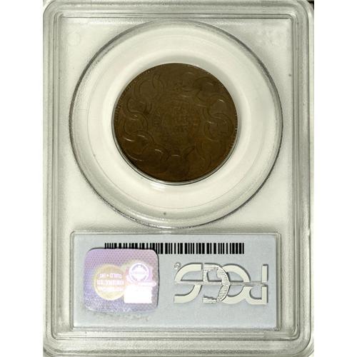 <B>1787 1C Fugio Cent, STATES UNITED, Cinquefoils MS62 Brown PCGS.</B></I> Newman 8-X, R.1. The lower obverse die break identifies this Bank of New York variety. Evenly struck aside from the upper reverse rings, which are soft due to metal flow toward the break. The deep chocolate-brown surfaces are attractive and problem-free. Listed on page 83 of the 2007 <I>Guide Book.</B></I><BR><BR><b>Shipping:</b> Coins & Currency (<a target="_blank" href="http://www.heritageauctions.com/common/shipping.php">view shipping information</a>)
